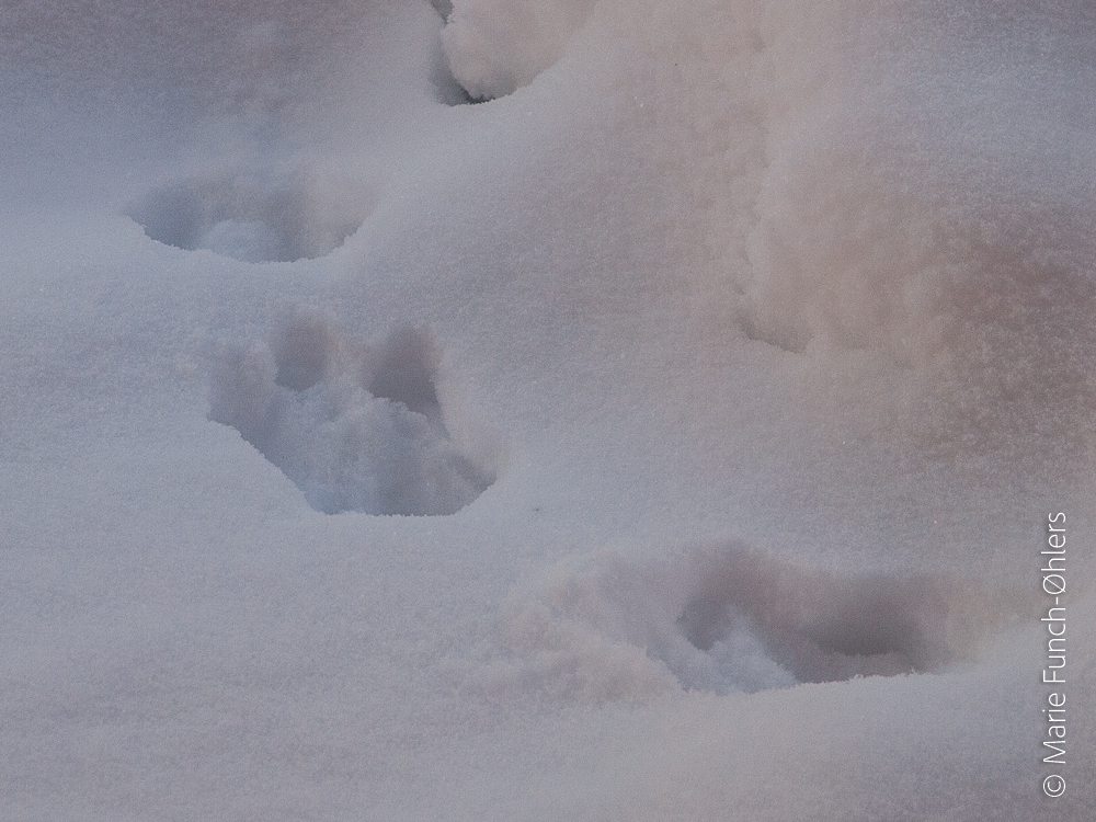 Betonghettobybarn som jeg er, aner jeg intet om dyrespor, så mit bidrag var et forventningsfuldt og dybt humoristisk “Bjørn?”.