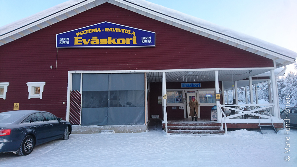 På vejen retur til hytten, svingede vi om et pizzaria, jeg havde forventningsfuld bestilt en pizza special med rendyr og bjørn.